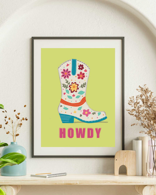 Howdy Floral Cowboy Boot Art Print