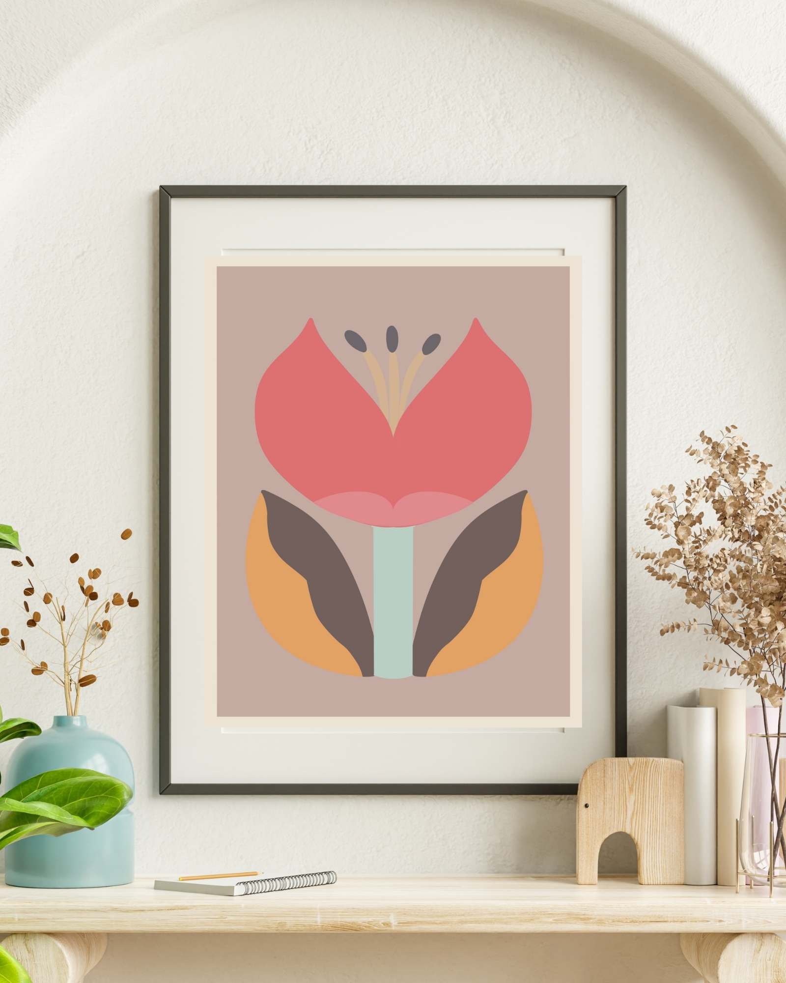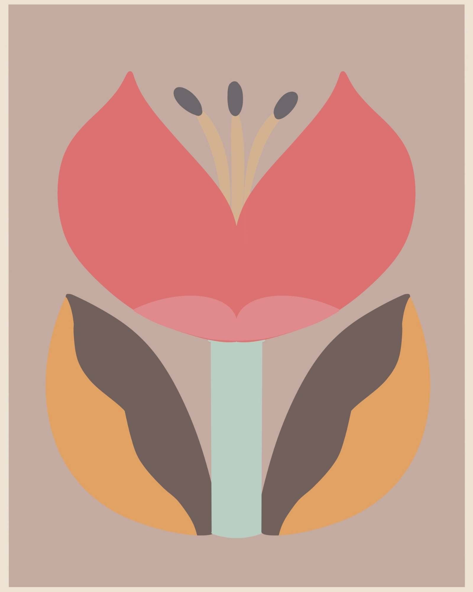 Unveil the beauty of abstraction with "Desert Rose," an art print that captures the essence of botanical grace with an abstract twist. This print presents a harmonious blend of warm desert hues and cool pastel tones, creating an inviting balance that resonates with tranquility and warmth.