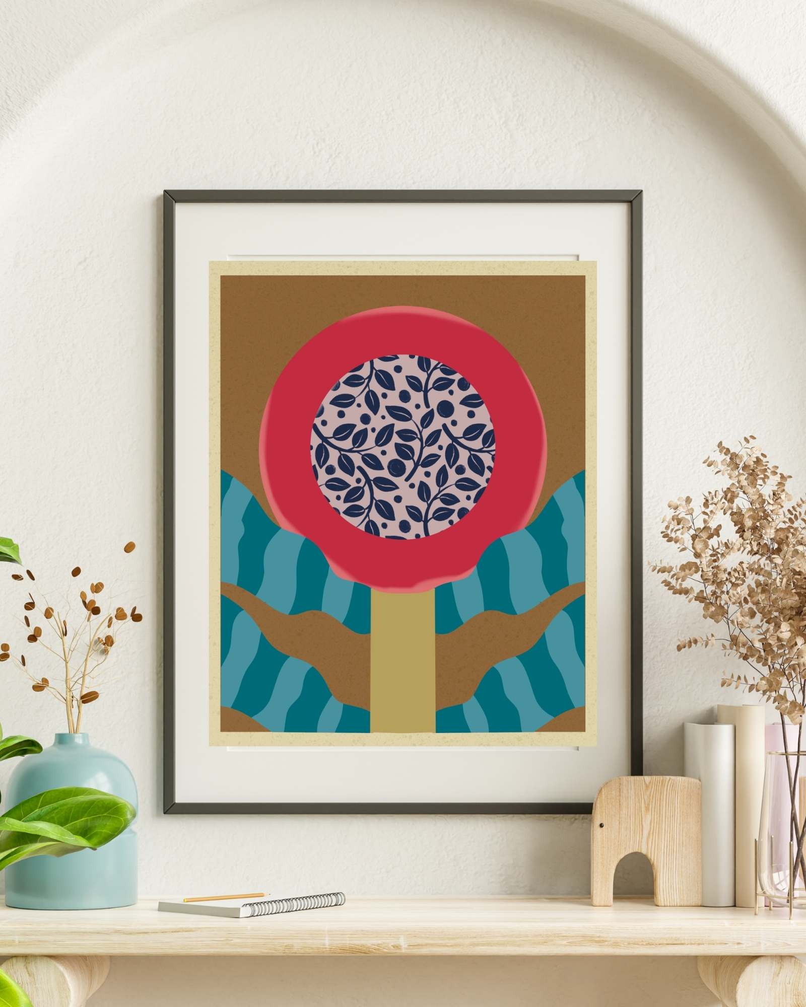 Designed for those who seek to bring an artistic and thoughtful presence to their living space, "Nature's Mirror" combines bold shapes with an organic palette, culminating in a print that stands out in any modern decor. Each print is rendered on exquisite paper that captures the depth of color and design, ensuring that your art piece will be a focal point for years to come.