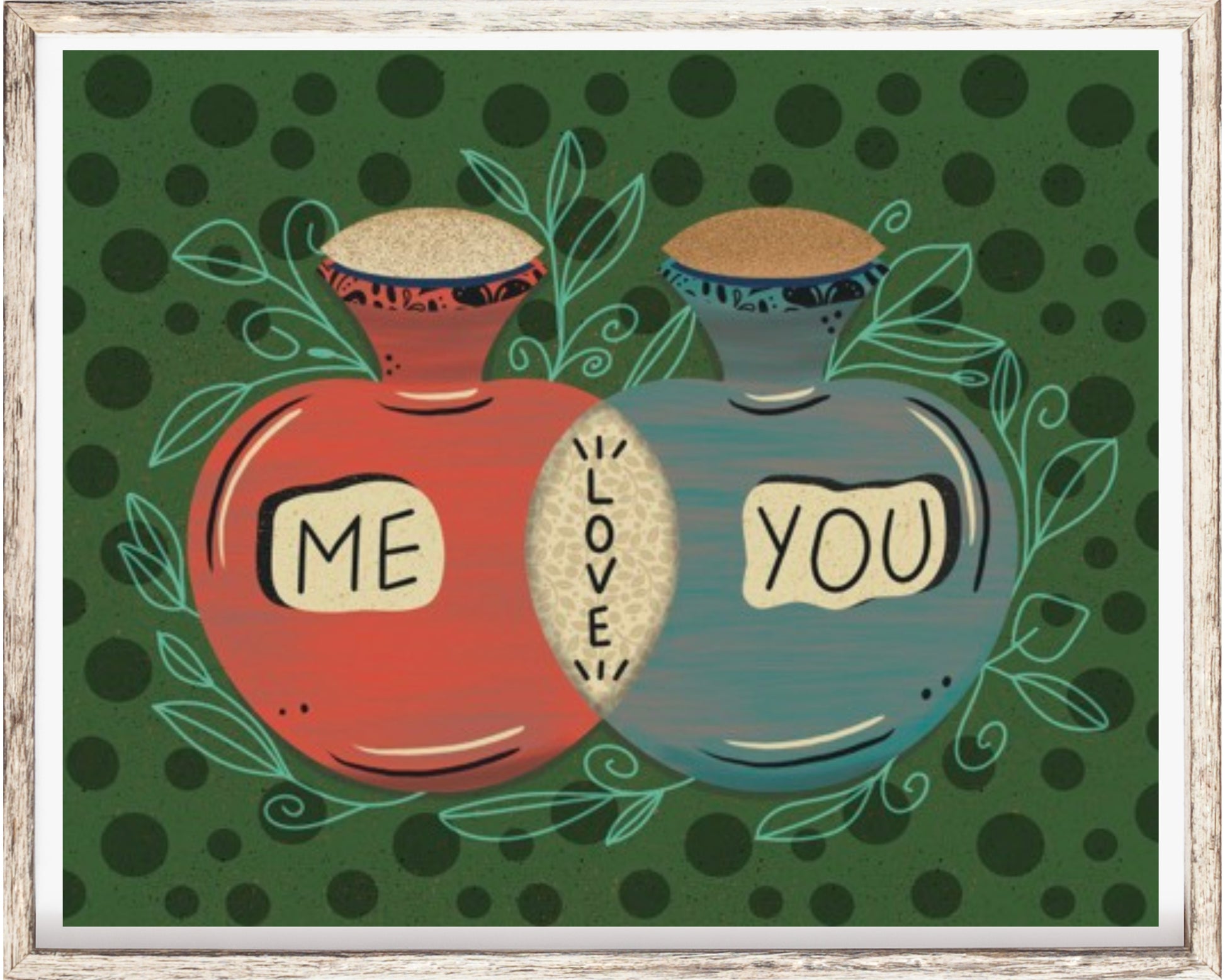 This sweet and modern art print celebrates connection with simple charm and heartfelt color. With playful typography and a soft palette, it’s a reminder of love meant to last. Perfect for bedrooms, anniversaries, or gifting to your person on any day that matters.